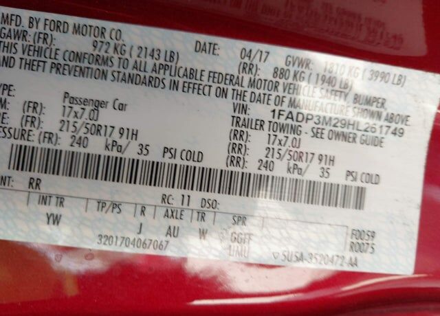 VIN 1FADP3M29HL261749 may have been