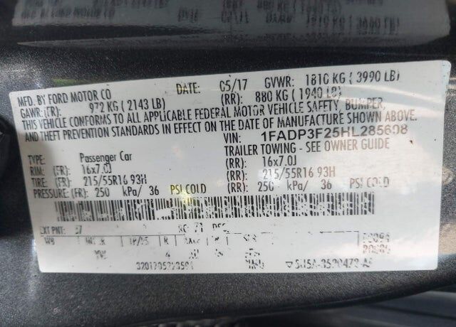 VIN 1FADP3F25HL285608 may have been