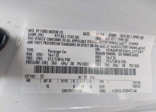 VIN 1FADP3FE8HL237241 may have been