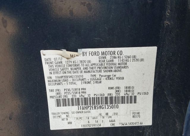 VIN 1FAHP2E85HG135010 may have been