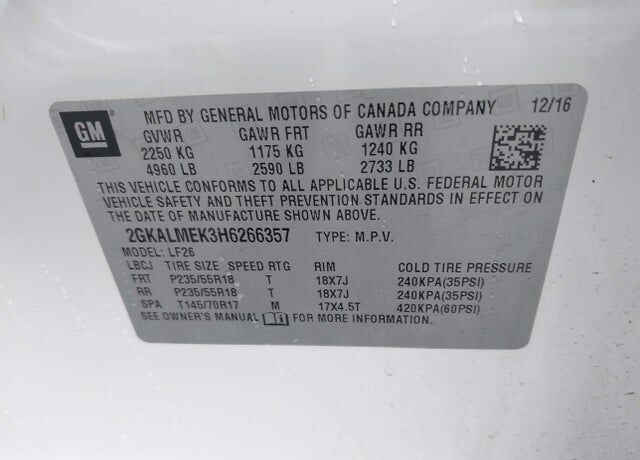 Vehicle Records & Info. Your report VIN 2GKALMEK3H6266357 includes: