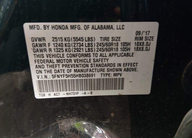 VIN 5FNYF5H55HB038691 may have been