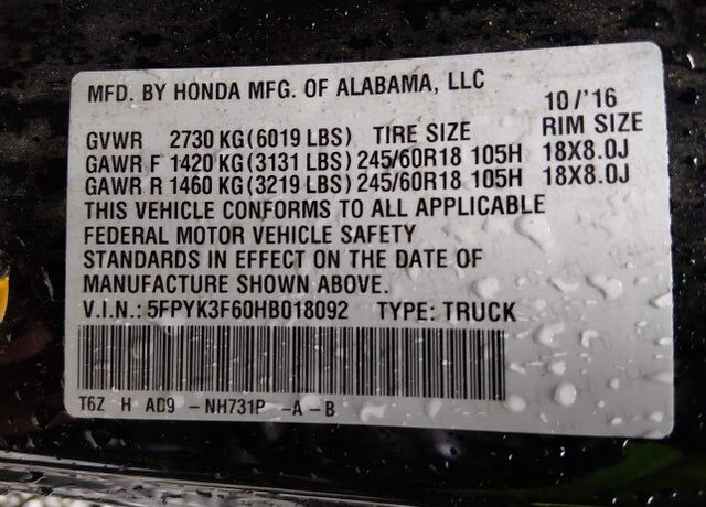 VIN 5FPYK3F60HB018092 may have been