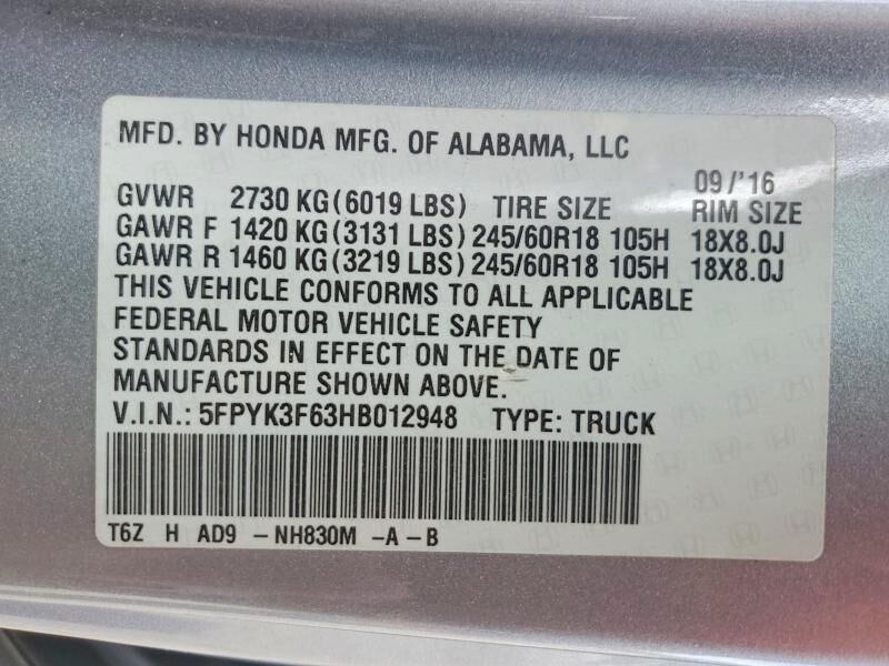 VIN 5FPYK3F63HB012948 may have been