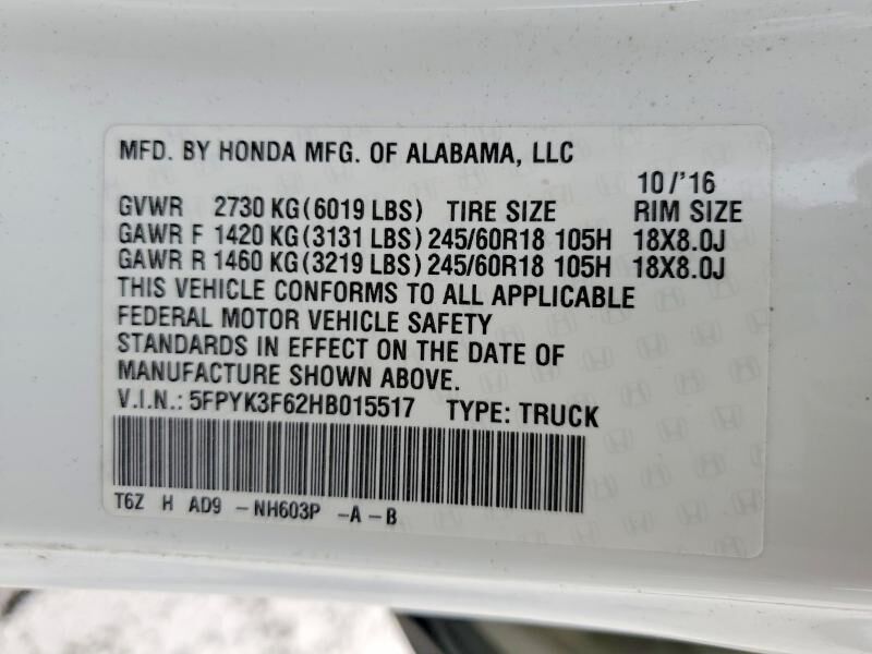 VIN 5FPYK3F62HB015517 may have been