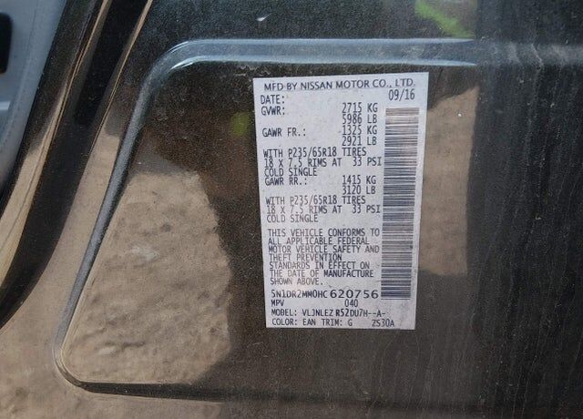 VIN 5N1DR2MM0HC620756 may have been