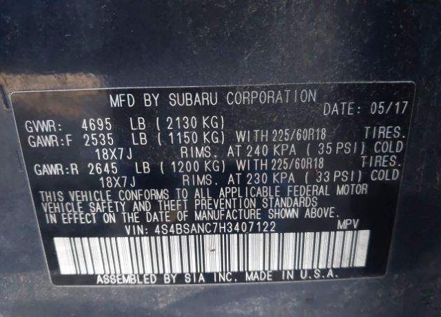 VIN 4S4BSANC7H3407122 may have been