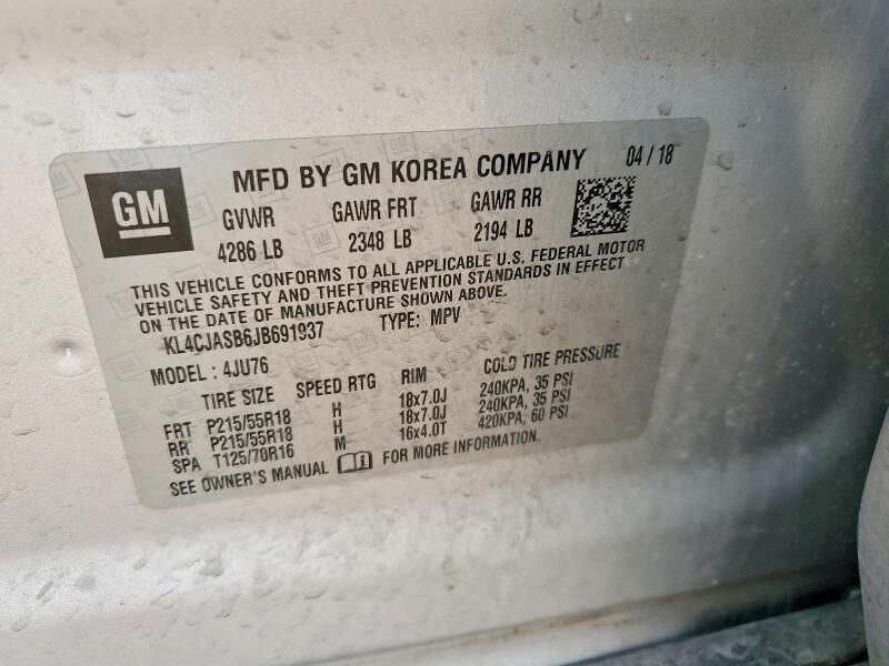 Vehicle Records & Info. Your report VIN KL4CJASB6JB691937 includes: