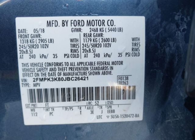 VIN 2FMPK3K80JBC26421 may have been