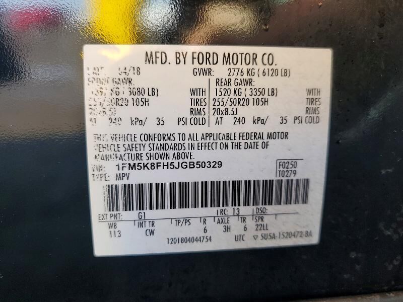 VIN 1FM5K8FH5JGB50329 may have been
