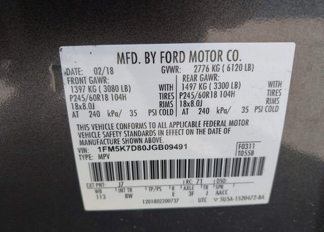 VIN 1FM5K7D80JGB09491 may have been