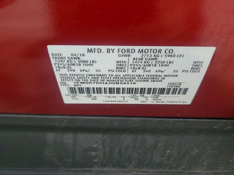 VIN 1FM5K7DH4JGB54319 may have been