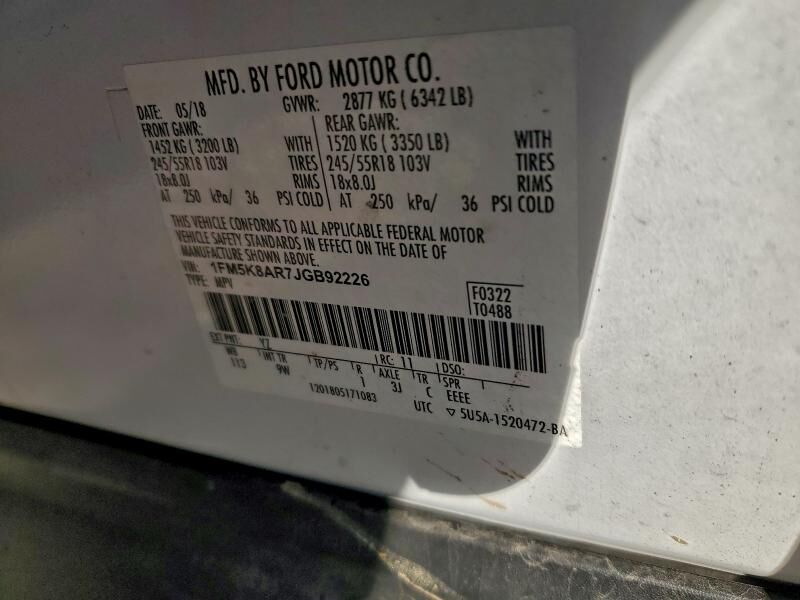 VIN 1FM5K8AR7JGB92226 may have been