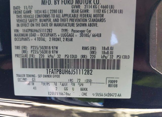 VIN 1FATP8UH6J5111282 may have been