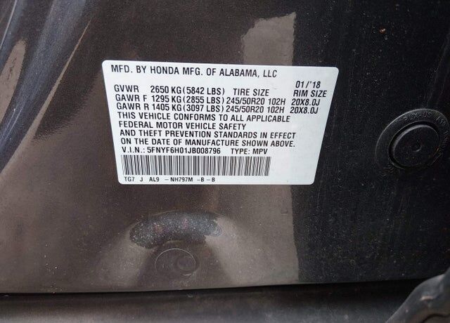 VIN 5FNYF6H01JB008796 may have been