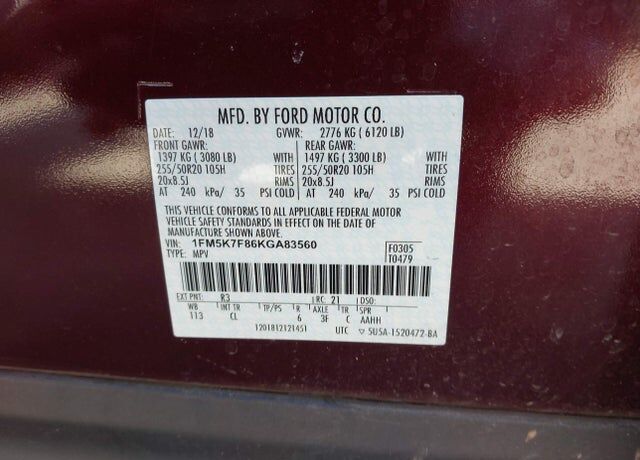 VIN 1FM5K7F86KGA83560 may have been