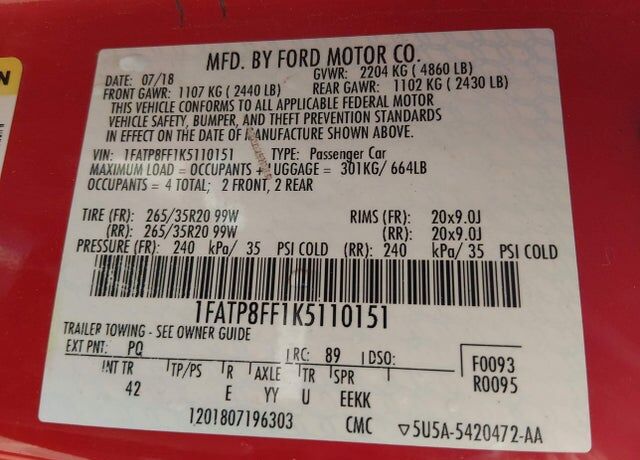 VIN 1FATP8FF1K5110151 may have been