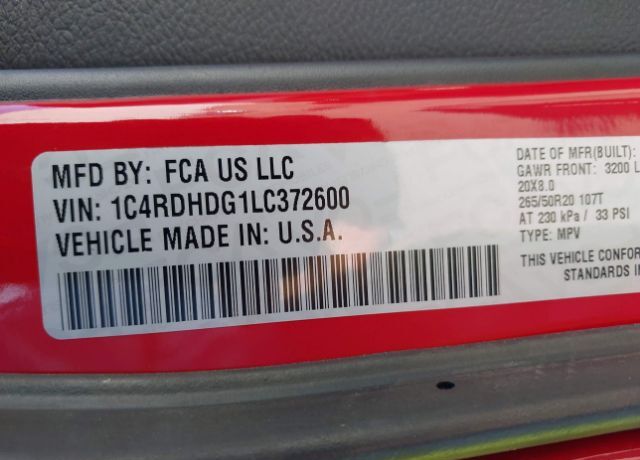 VIN 1C4RDHDG1LC372600 may have been