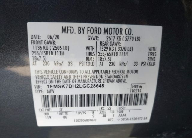 VIN 1FMSK7DH2LGC28648 may have been