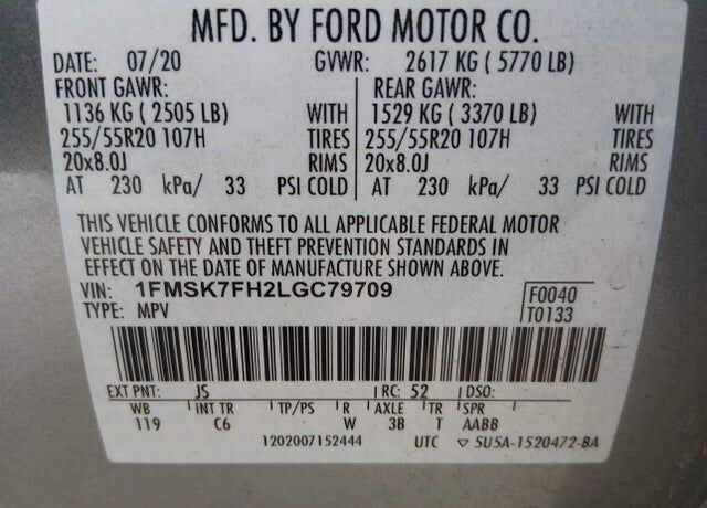VIN 1FMSK7FH2LGC79709 may have been