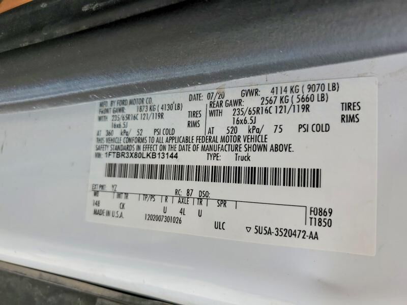VIN 1FTBR3X80LKB13144 may have been