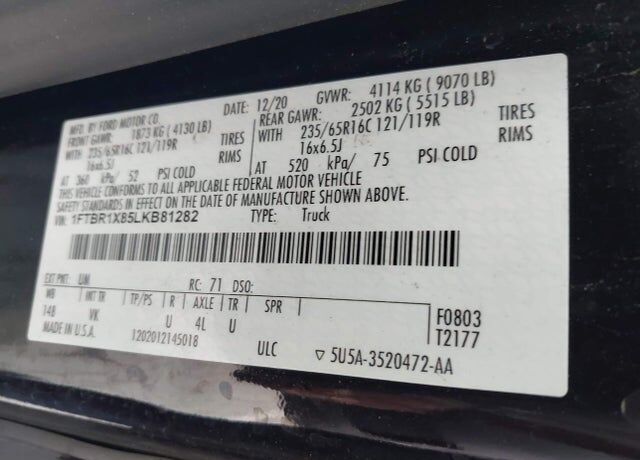 VIN 1FTBR1X85LKB81282 may have been