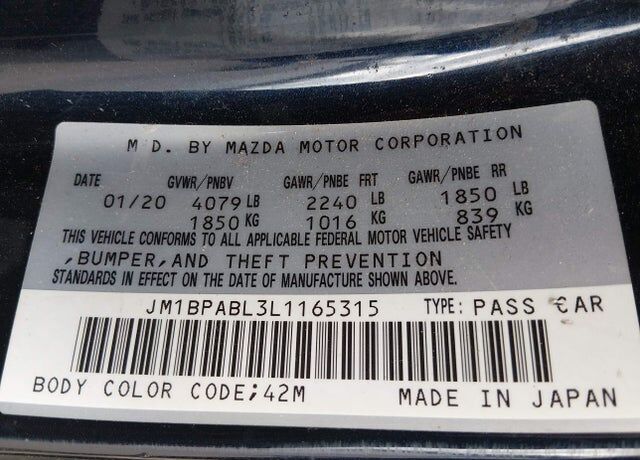 VIN JM1BPABL3L1165315 may have been