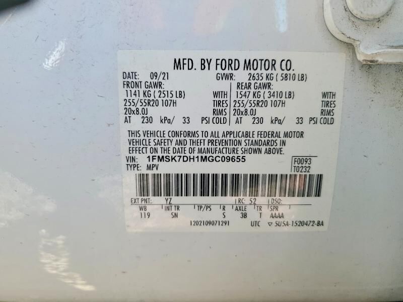 VIN 1FMSK7DH1MGC09655 may have been