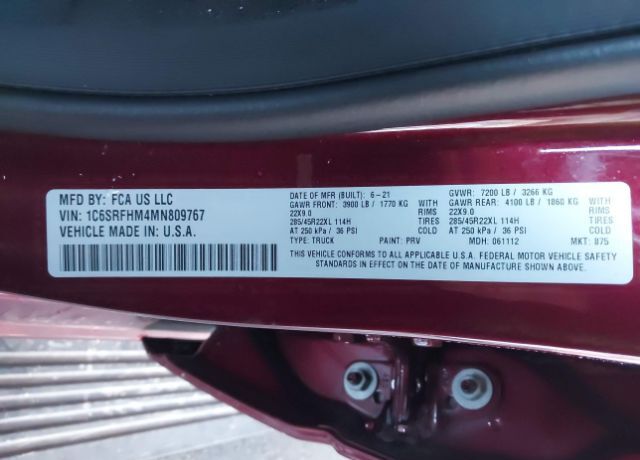 VIN 1C6SRFHM4MN809767 may have been