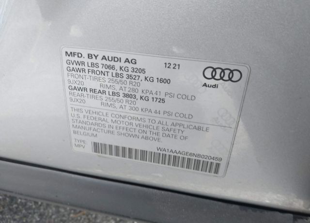 VIN WA1AAAGE6NB020459 may have been