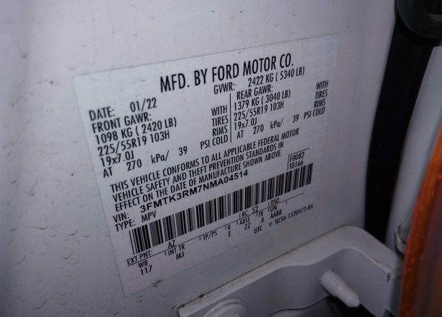 Vehicle Records & Info. Your report VIN 3FMTK3RM7NMA04514 includes: