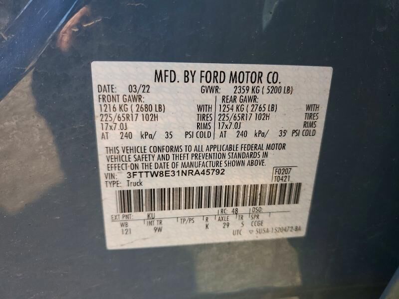 VIN 3FTTW8E31NRA45792 may have been