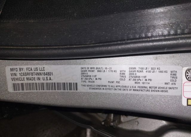 VIN 1C6SRFBT4NN164801 may have been