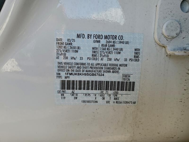 Vehicle Records & Info. Your report VIN 1FMUK8KH9SGB67024 includes:
