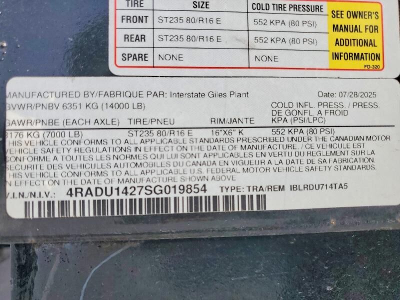 Vehicle Records & Info. Your report VIN 4RADU1427SG019854 includes: