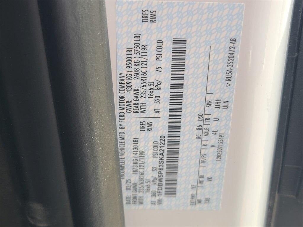 Oxford White 2025 Ford Transit-350 12Ft ROCKPORT Box Van 10-Speed Automatic with Overdrive V6ABS brakes, Electronic Stability Control, Illuminated entry, Low tire pressure warning, Remote keyless entry. ABS brakes, Electronic Stability Control, Illum...