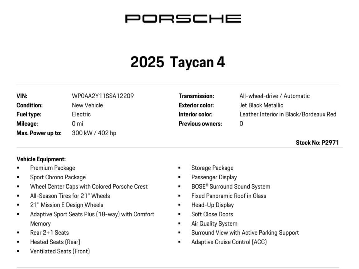 I'm interested in: 2025 PORSCHE Taycan