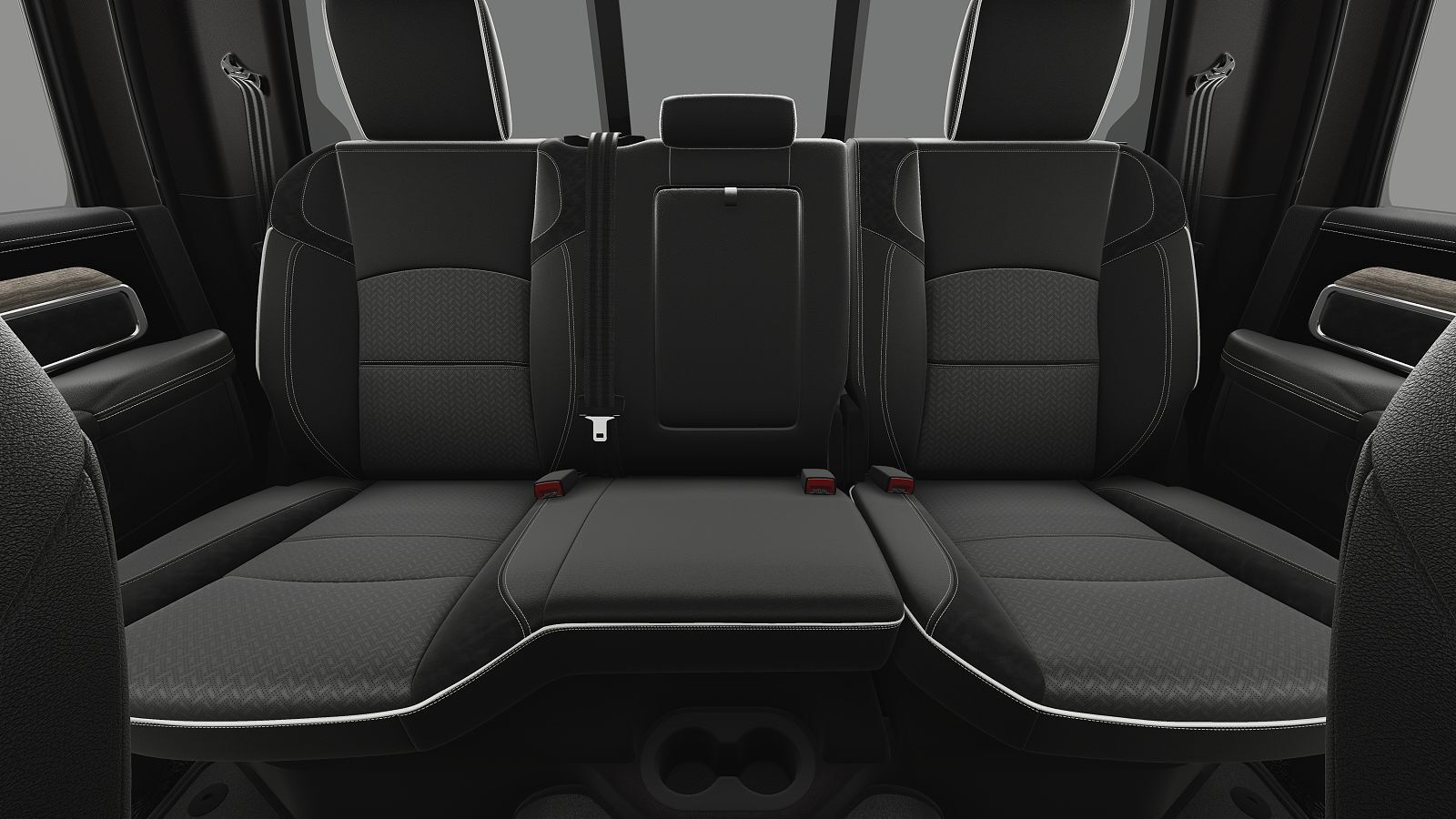 Rear seat upholstery Simulated suede and leather rear seat upholstery