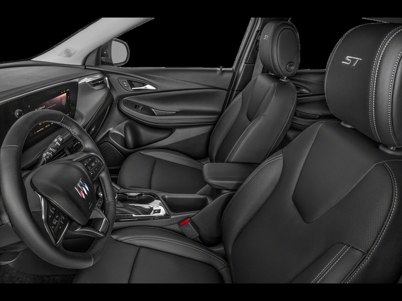 Ebony seats and interior with Santorini Blue stitching Leatherette seat trim