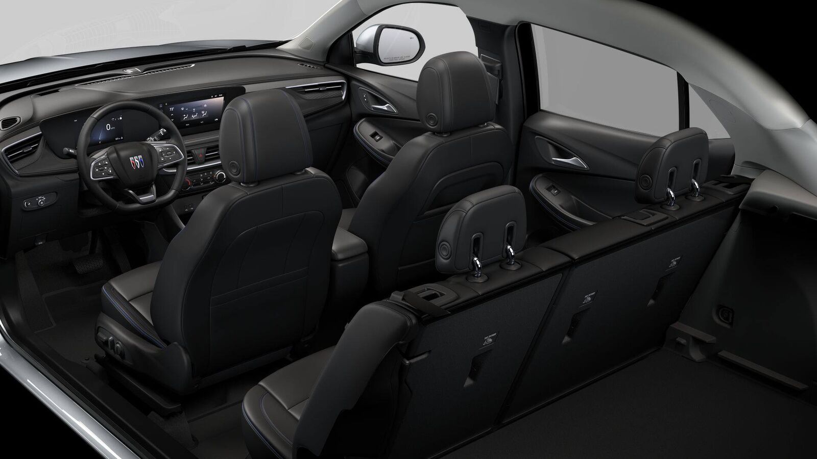 Ebony seats and interior with Santorini Blue stitching Leatherette seat trim