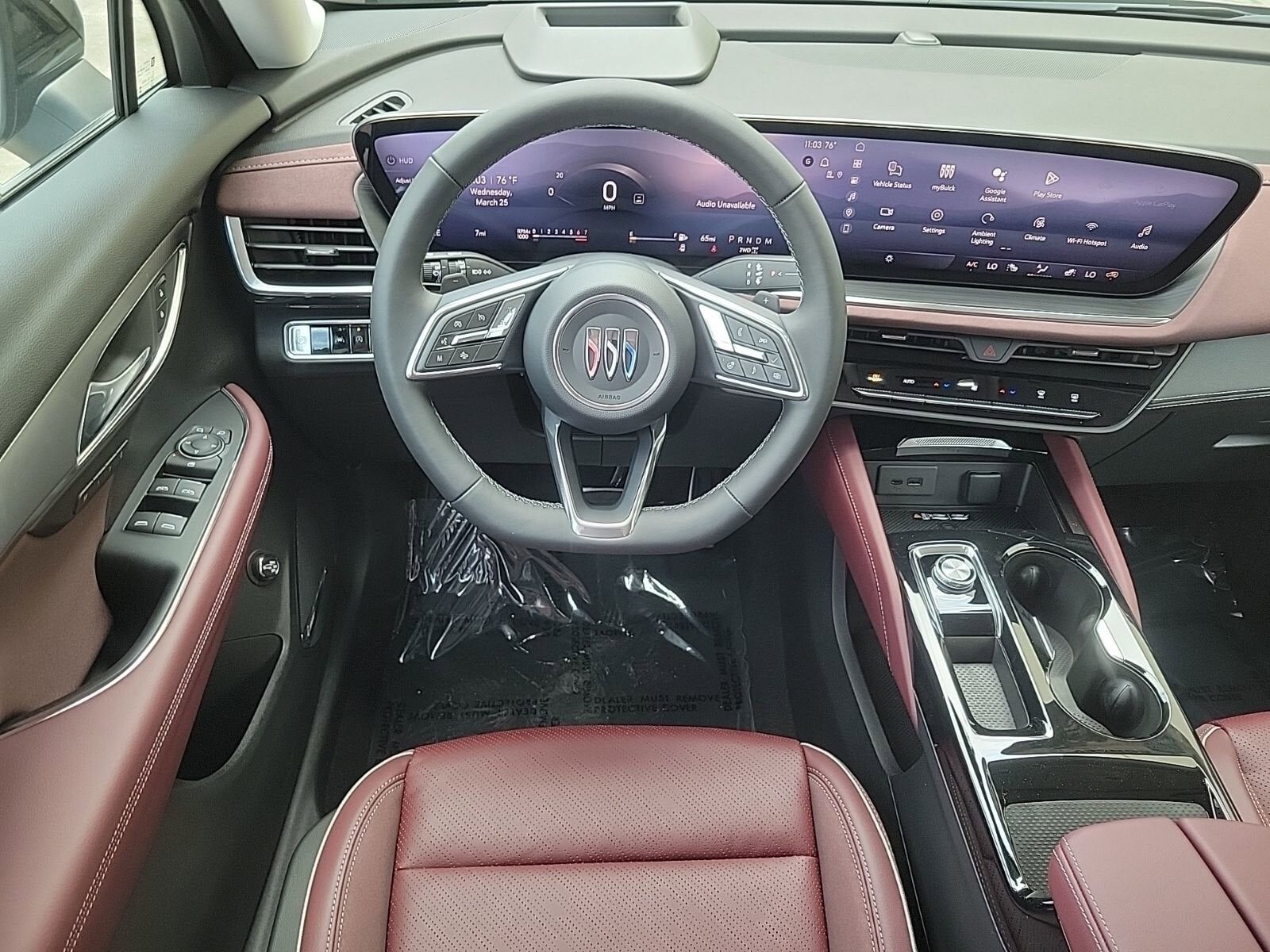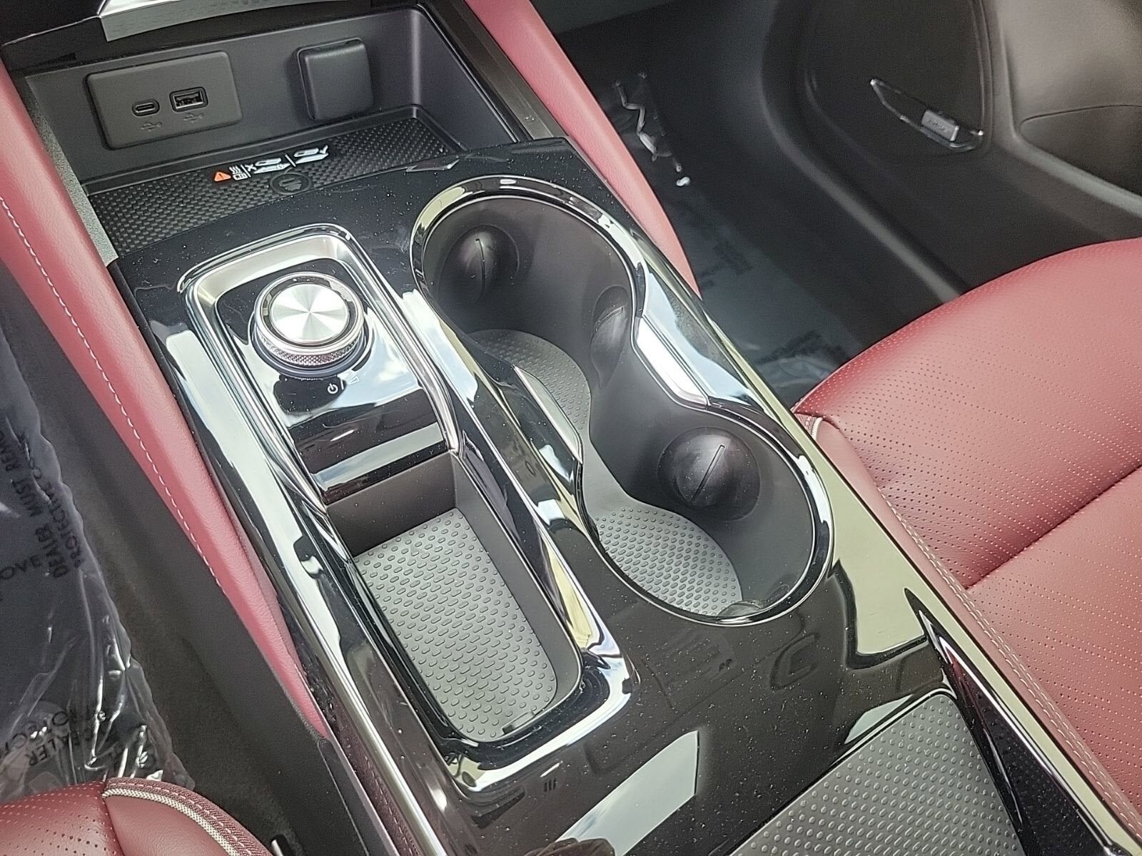 Garnet seats with Ebony interior accents Perforated Leather-appointed seat trim with synthetic suede inserts and piping