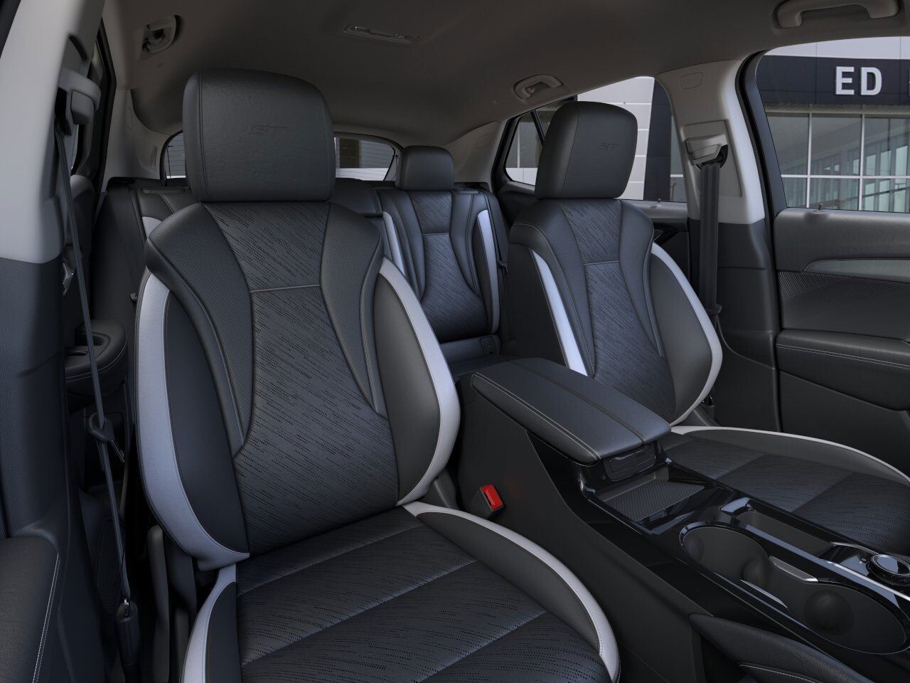 Ebony seats with Sky Cool Gray and Ebony interior accents Perforated Leather-appointed seat trim with synthetic suede inserts and piping