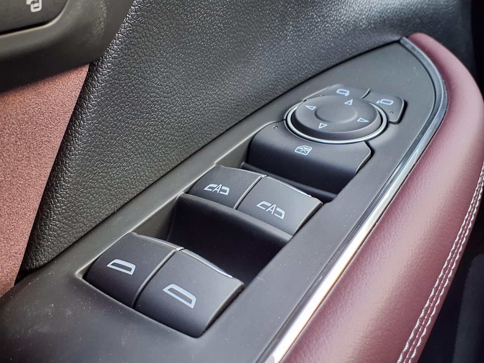 Garnet seats with Ebony interior accents Perforated Leather-appointed seat trim with synthetic suede inserts and piping