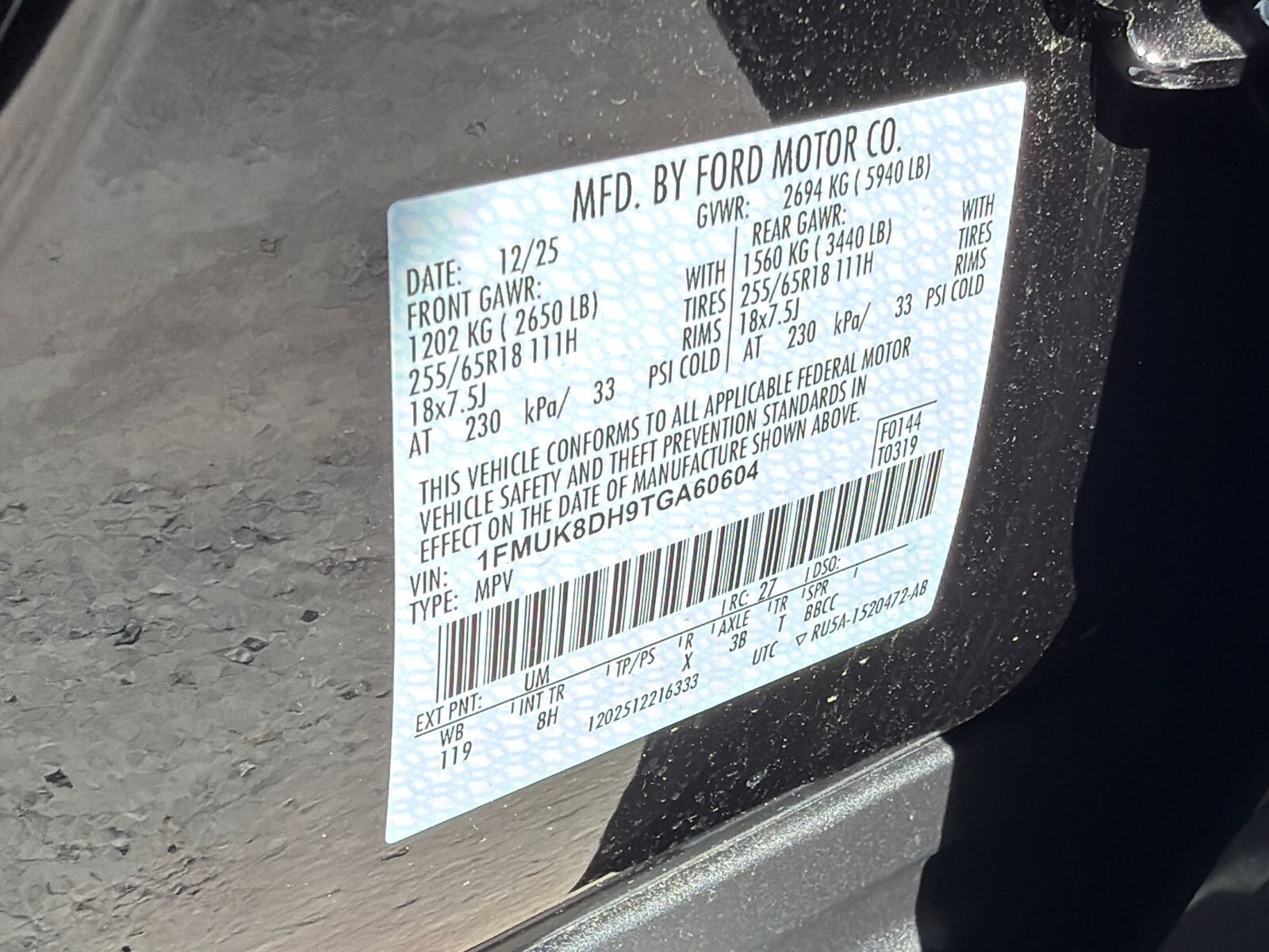 Tires: P255/65R18 AS BSW