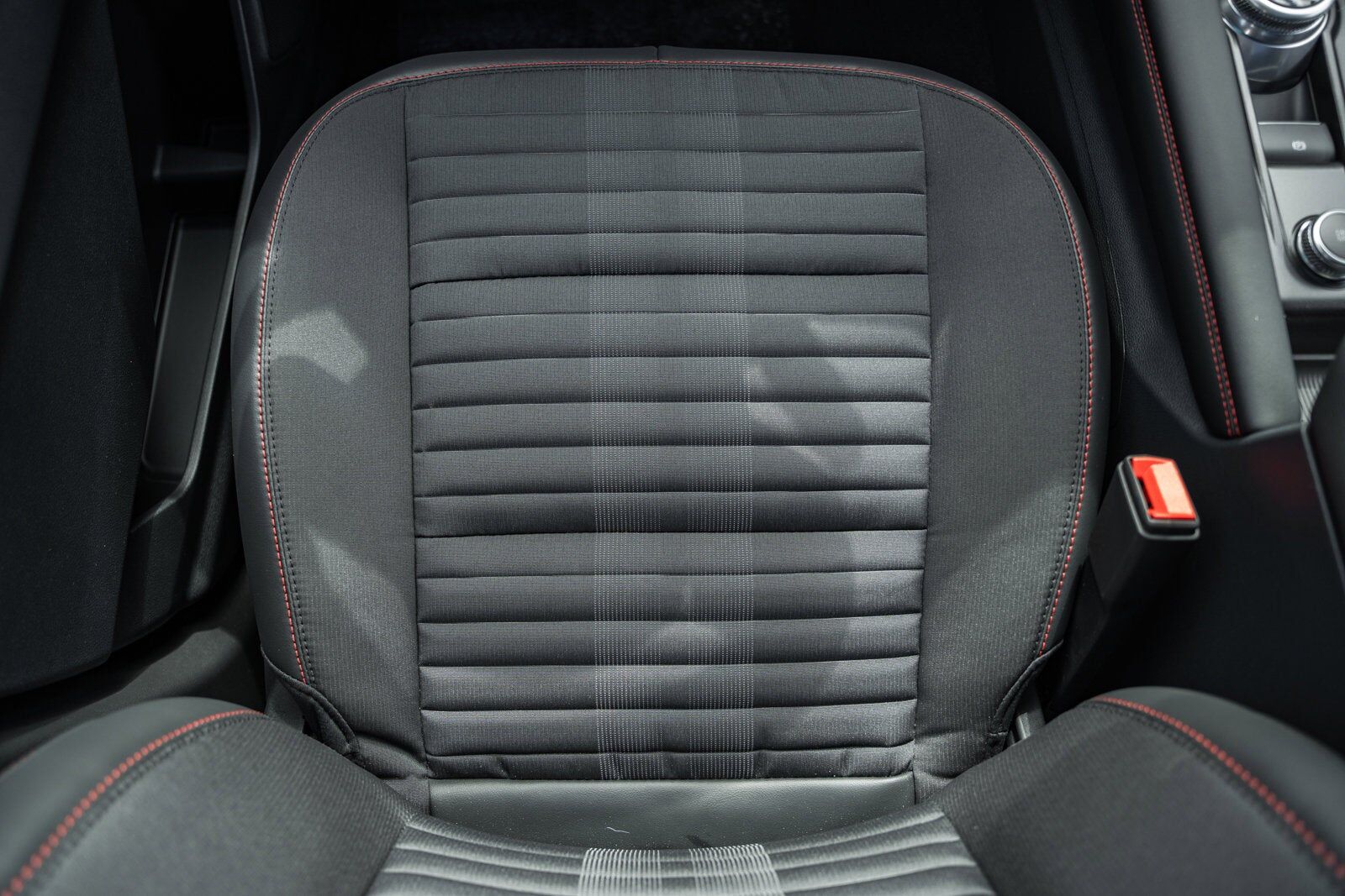 Heated Unique Cloth Captain's Chairs -inc: red stitching 10-way power driver and 8-way power front passenger