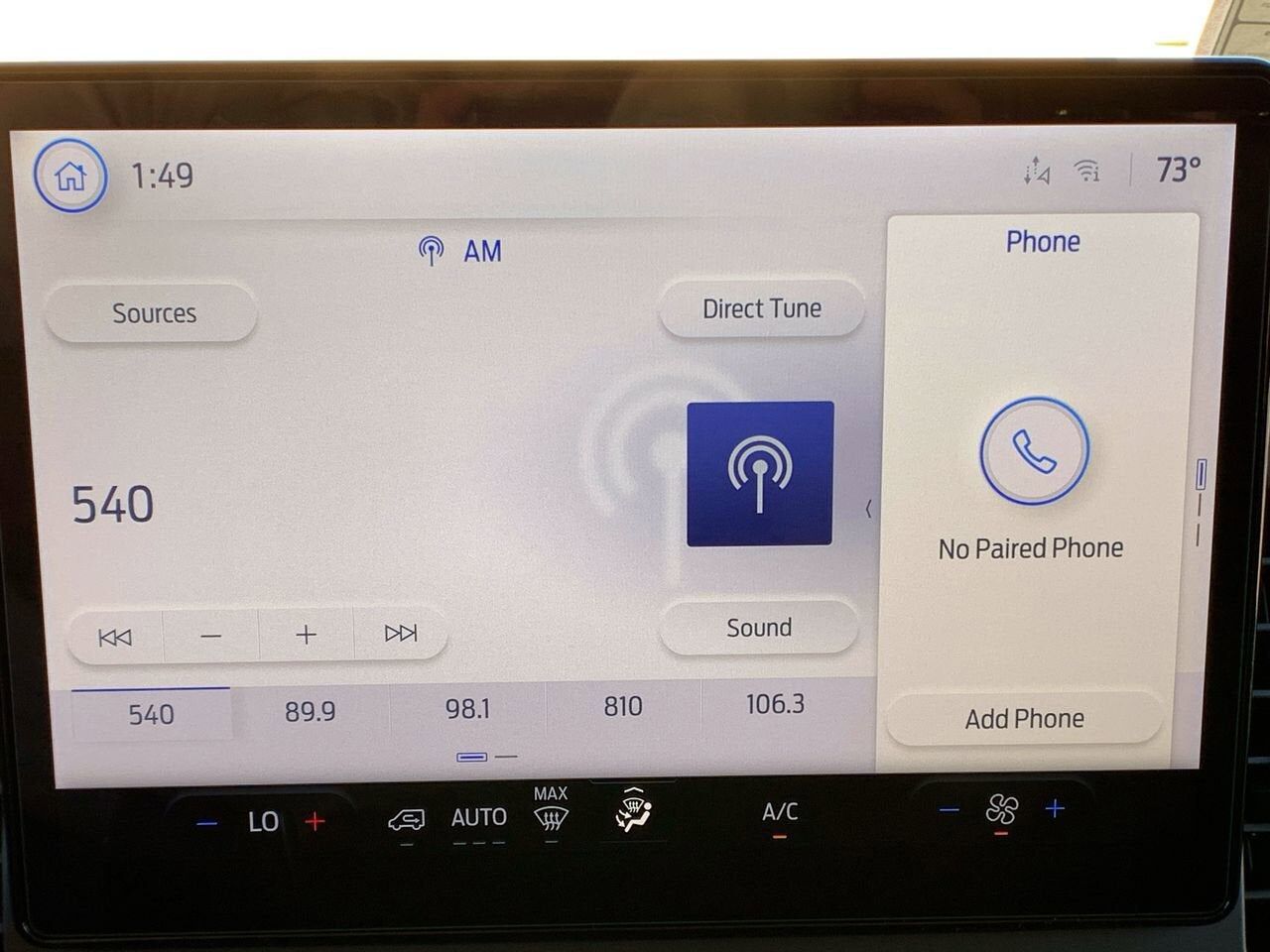 SYNC 4 -inc: 12" center display Bluetooth® dual USB ports enhanced voice recognition electronic climate control and connectivity package which includes information on demand panel wireless Apple CarPlay and Android Auto compatibility cloud connected 911 Assist digitial owner's manual and conversational voice command recognition