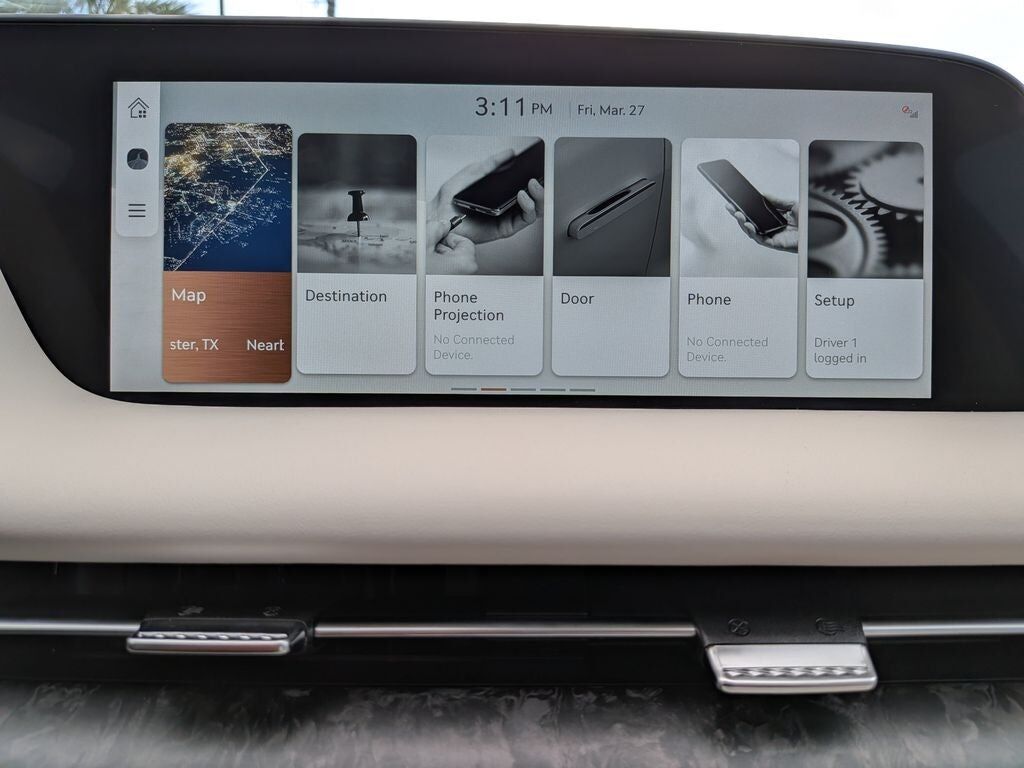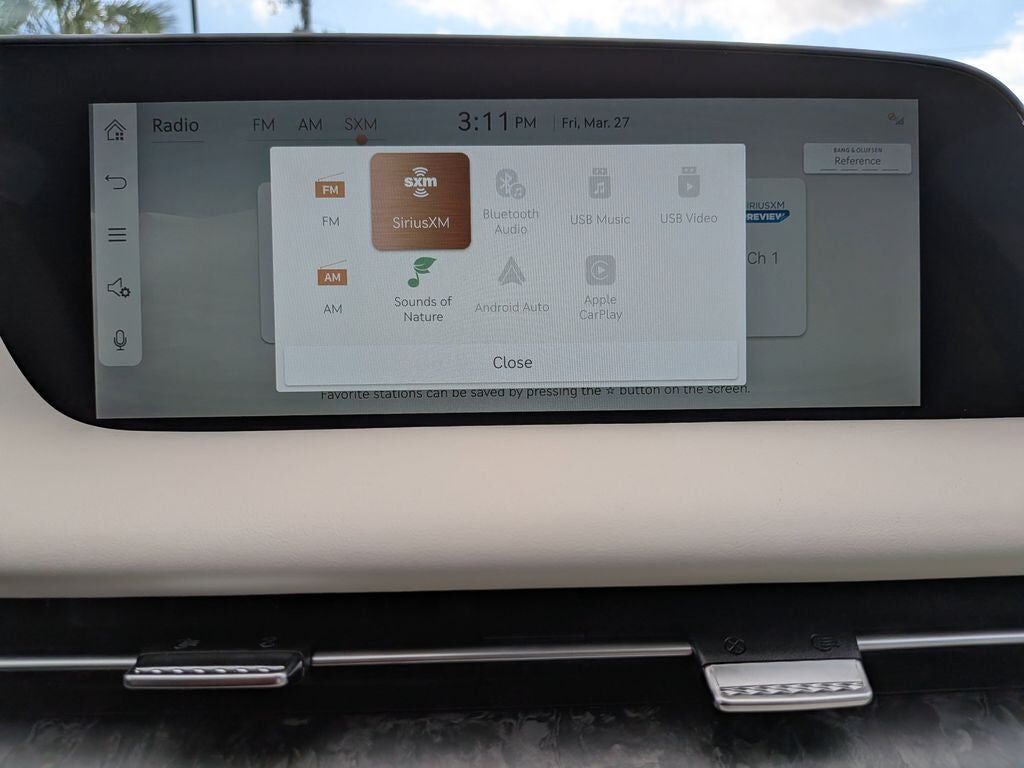 Radio: AM/FM Bang & Olufsen 3D Prem Audio System -inc: HD radio navigation system w/12.3" HD screen SiriusXM radio w/90-day subscription (not available in AK & HI) wireless Apple CarPlay and Android Auto 23 speakers 100W x 14 channel (1400W max equivalent output) Genesis Connected Services 300W auxiliary amplifier for 3D sound Bluetooth® hands-free phone and audio streaming system USB connectivity and Wi-Fi hotspot