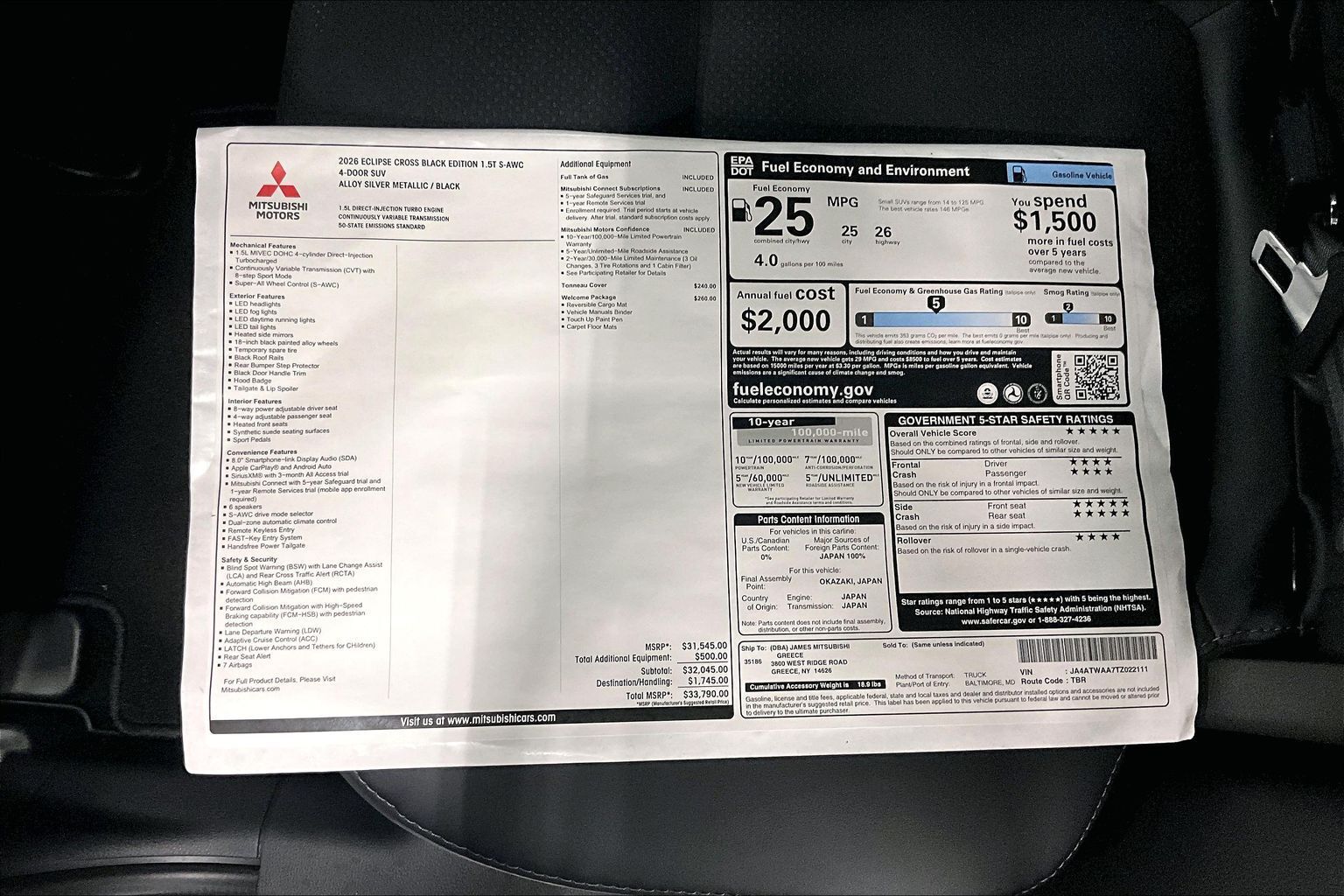 Fuel economy city