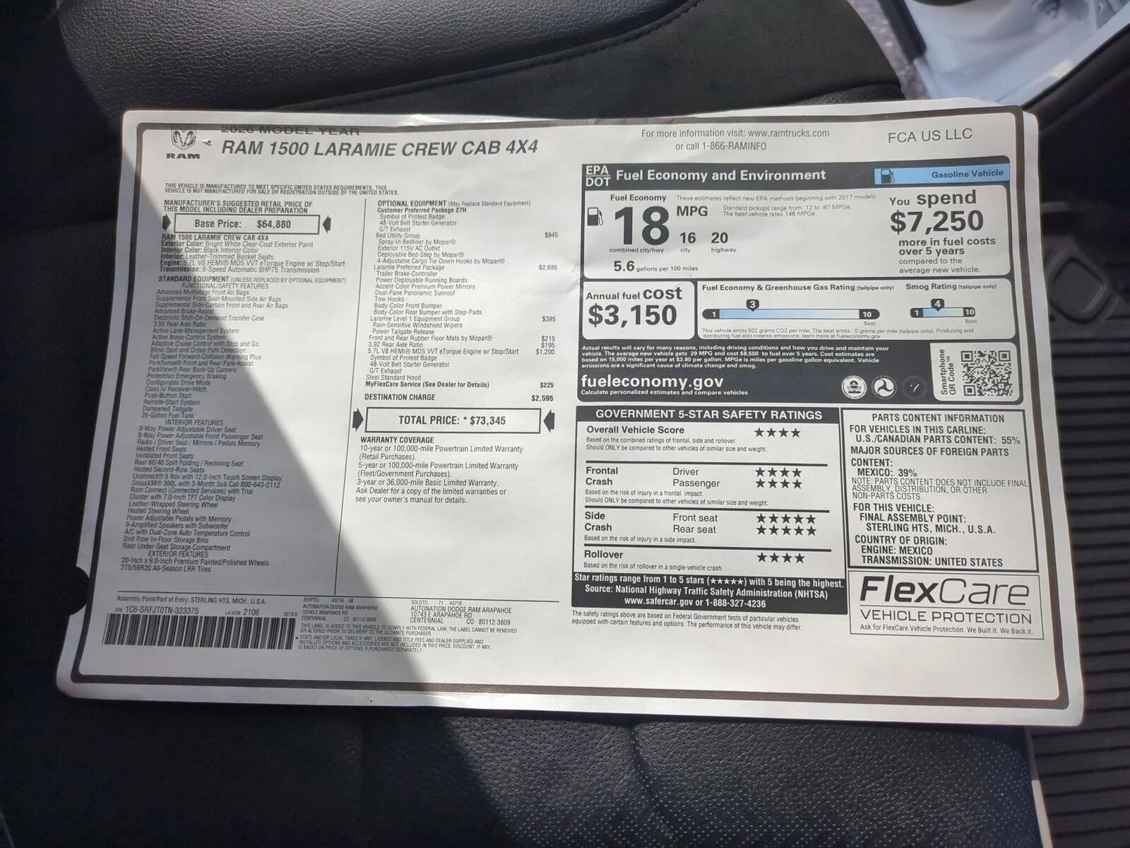 Bed liner MOPAR spray-in pickup bed liner
