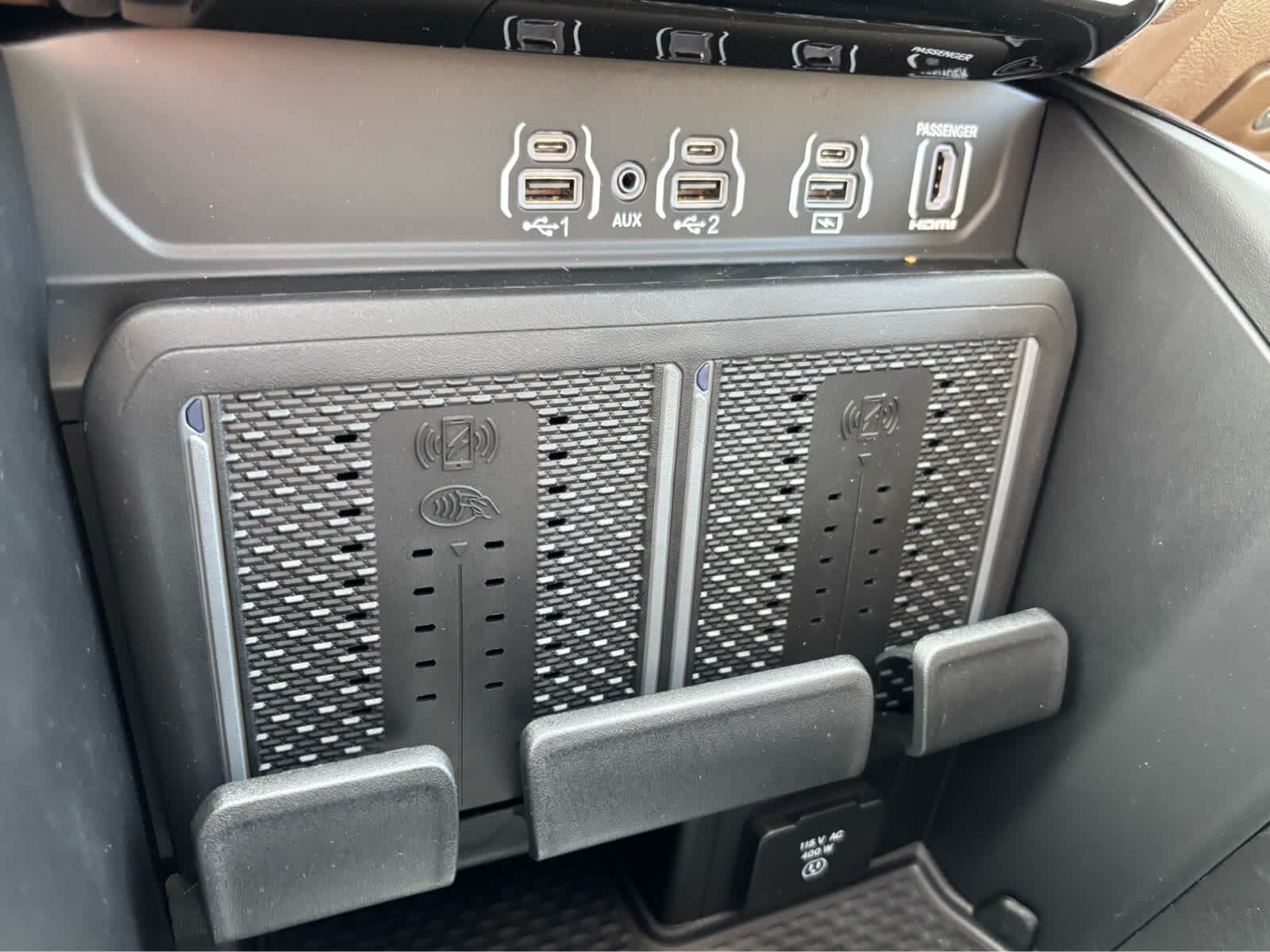 Full Floor Console w/Covered Storage Mini Overhead Console w/Storage 1 12V DC Power Outlet and 2 Interior 120V AC Power Outlets